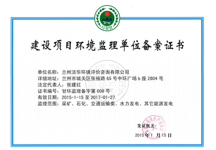 建設項目環境監理單位備案證書